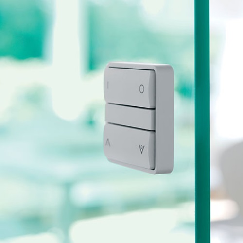 Betjen Velux ovenlys, gardiner, biograflærred og markiser med tryk på væggen.